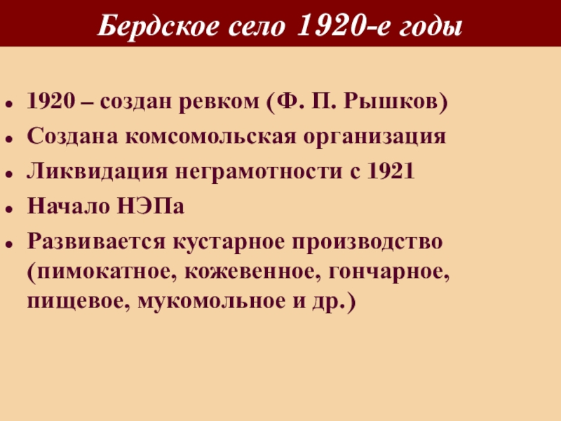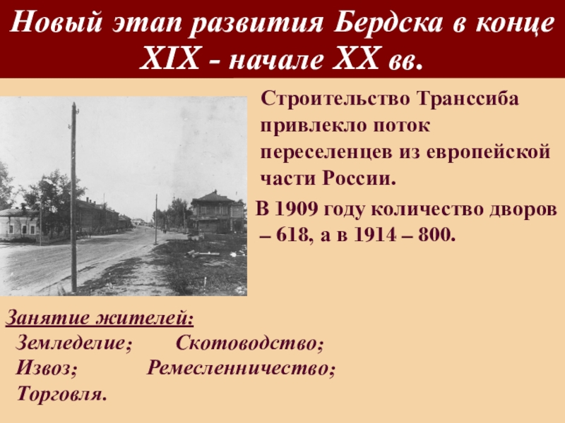 С 1929 г. – 1933 г. – Бердск рабочий поселок