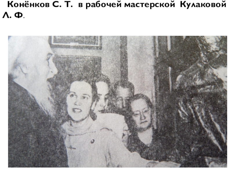 Слайд 6 Конёнков С. Т. в рабочей мастерской Кулаковой Л. Ф.