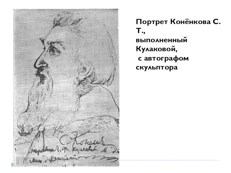 Портрет Конёнкова С. Т., выполненный Кулаковой, с автографом скульптора