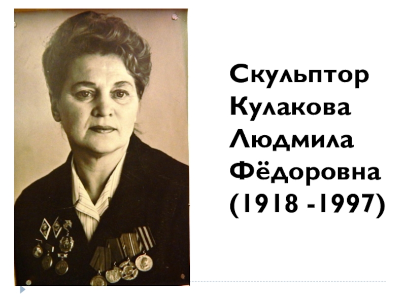 Слайд 1Скульптор Кулакова Людмила Фёдоровна (1918 -1997)