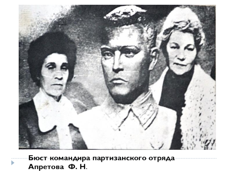 Слайд 14Бюст командира партизанского отряда Апретова Ф. Н.