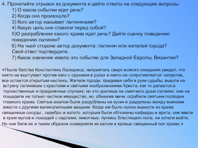 1204 – жестокое разграбление крестоносцами Константинополя.