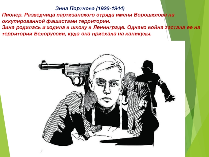 Пионер. Разведчица партизанского отряда имени Ворошилова на оккупированной фашистами территории.