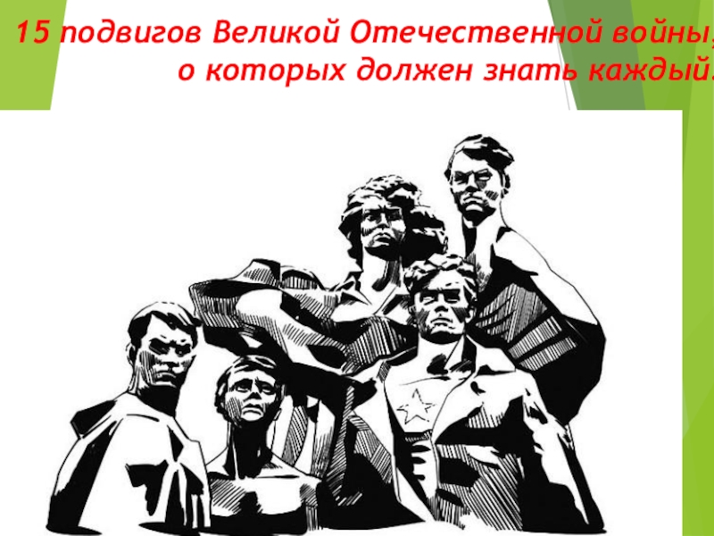 Слайд 215 подвигов Великой Отечественной войны,о которых должен знать каждый.
