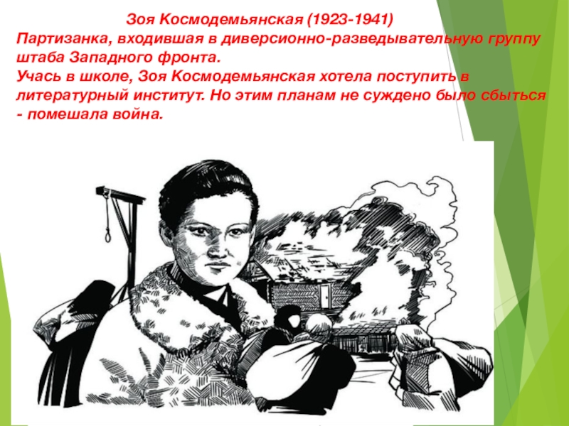 Учась в школе, Зоя Космодемьянская хотела поступить в литературный институт. Но этим планам не суждено было сбыться - помешала война.