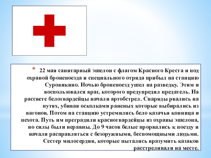 Слайд 1022 мая санитарный эшелон с флагом Красного Креста и под охраной