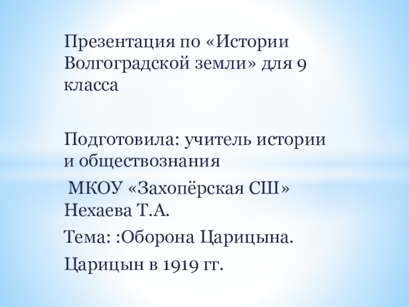 Слайд 1Презентация по «Истории Волгоградской земли» для 9 класса