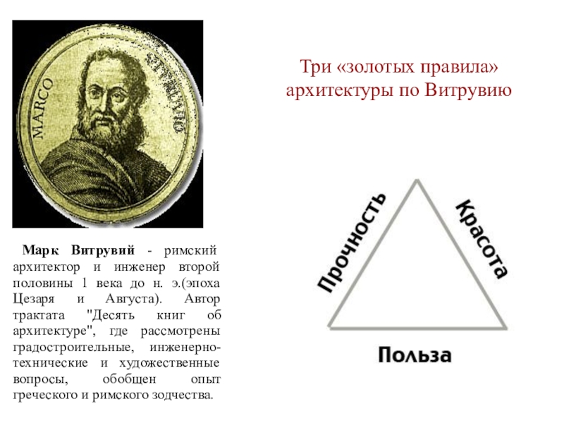 Слайд 3 Марк Витрувий - римский архитектор и инженер второй половины 1