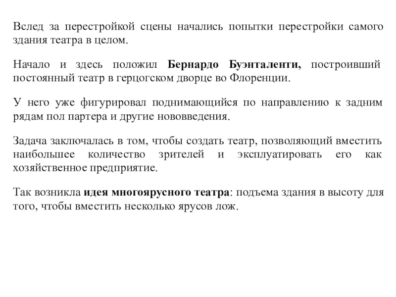Слайд 50Вслед за перестройкой сцены начались попытки перестройки самого здания театра в
