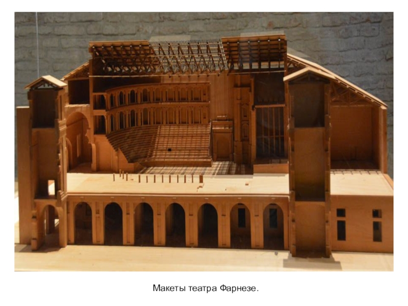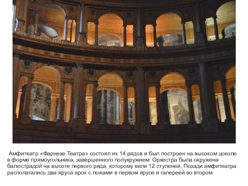 Слайд 34 Амфитеатр «Фарнезе Театра» состоял из 14 рядов и был построен