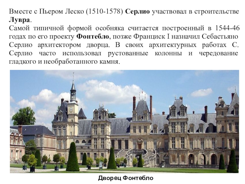Слайд 5Вместе с Пьером Леско (1510-1578) Серлио участвовал в строительстве Лувра.