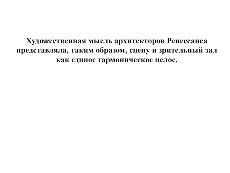 Слайд 14Художественная мысль архитекторов Ренессанса представляла, таким образом, сцену и зрительный зал