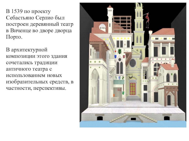 Слайд 6В 1539 по проекту Себастьяно Серлио был построен деревянный театр в