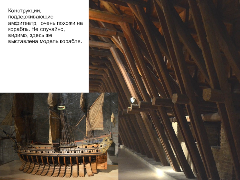 Слайд 38Конструкции, поддерживающие амфитеатр, очень похожи на корабль. Не случайно, видимо, здесь