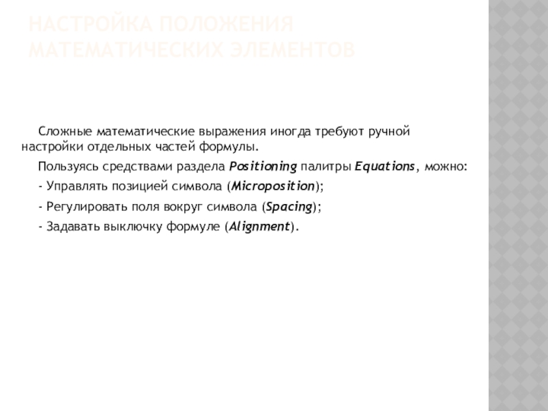 Математические символы — специальные знаки, которые набираются большим кеглем (например: , и пр.).
