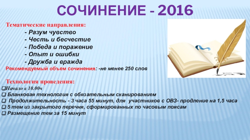 Слайд 3 СОЧИНЕНИЕ - 2016
