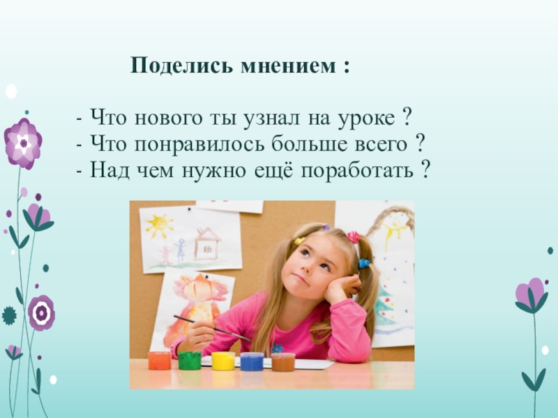 Поделись мнением :  - Что нового ты узнал на уроке ? -