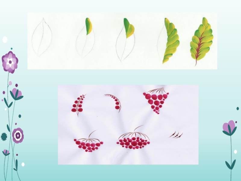 и техникой выполнения петриковской росписи; Научить выполнять несложную композицию в технике петриковской росписи.