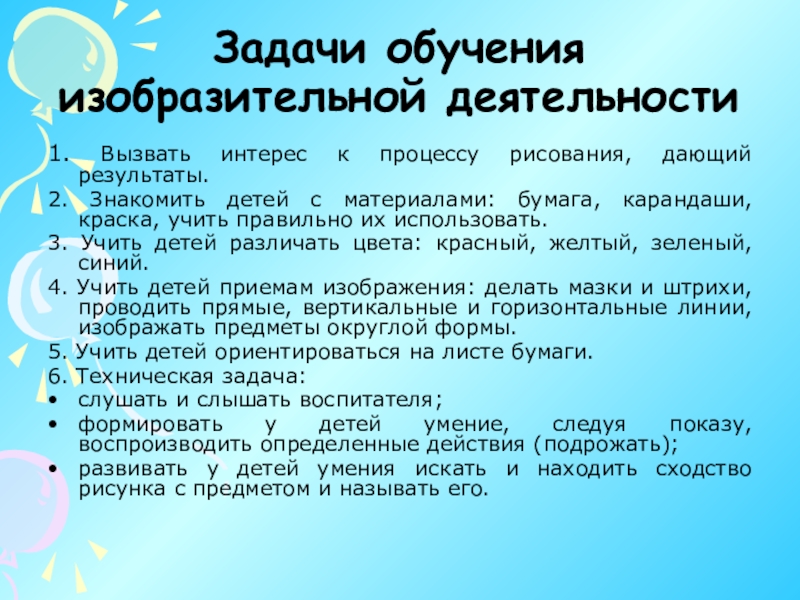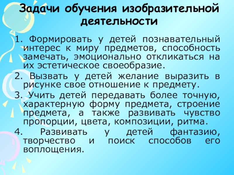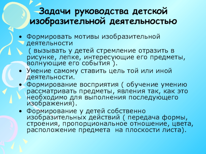 Слайд 10Задачи руководства детской изобразительной деятельностью