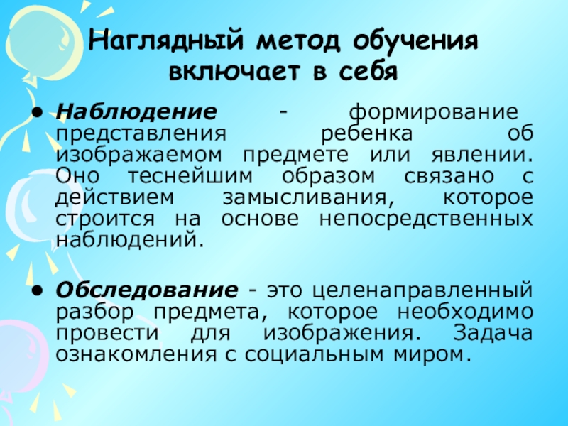 Слайд 14Наглядный метод обучения включает в себя