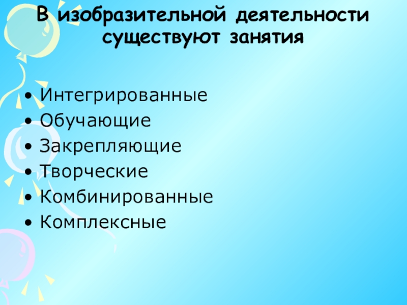 Слайд 20Виды занятий по изобразительной деятельности делятся по критериям выделения