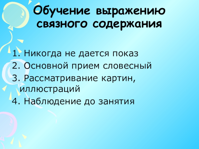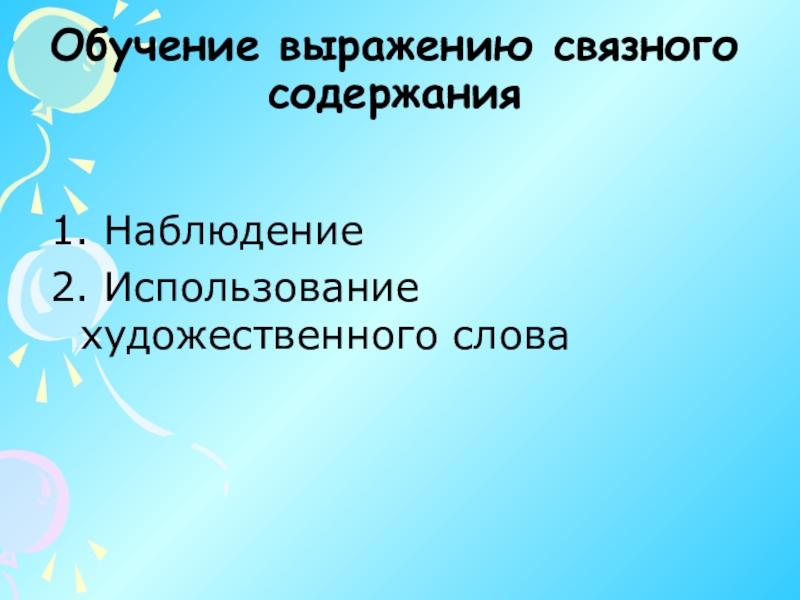 Слайд 71Обучение выражению связного содержания