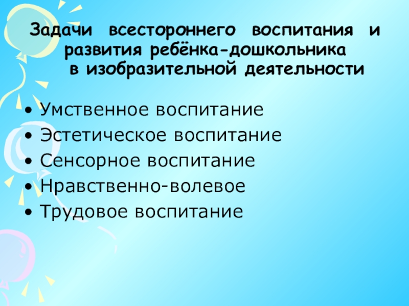 Слайд 4Задачи всестороннего воспитания и развития ребёнка-дошкольника