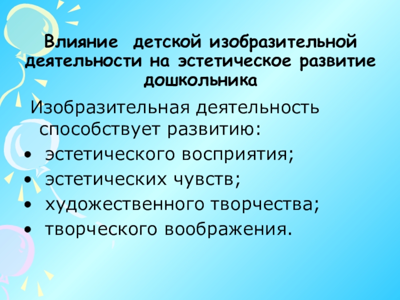 Слайд 6Влияние детской изобразительной деятельности на эстетическое развитие дошкольника