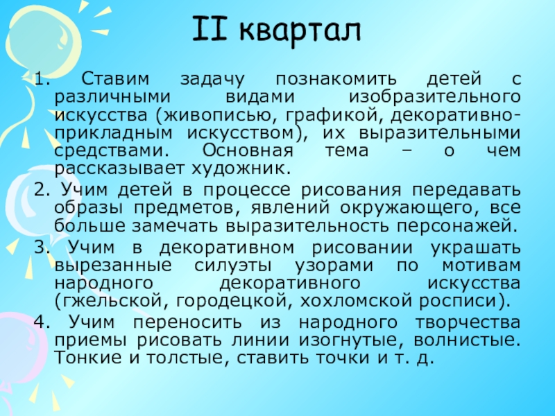 1. Ставим задачу познакомить детей с различными видами изобразительного искусства