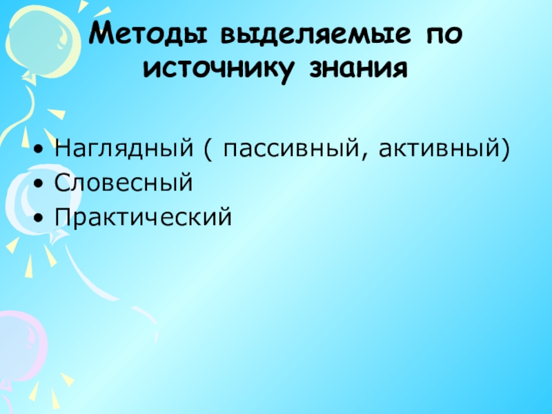 Слайд 13Методы выделяемые по источнику знания