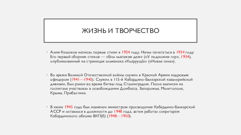 Презентация, доклад по кабардинскому языку Жизнь и творчество Алима Кешокова