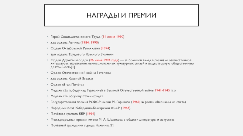 Народный поэт Кабардино-Балкарской АССР (1964)