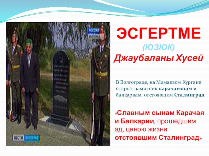 В Волгограде, на Мамаевом Кургане открыт памятник карачаевцам и балкарцам, отстоявшим Сталинград