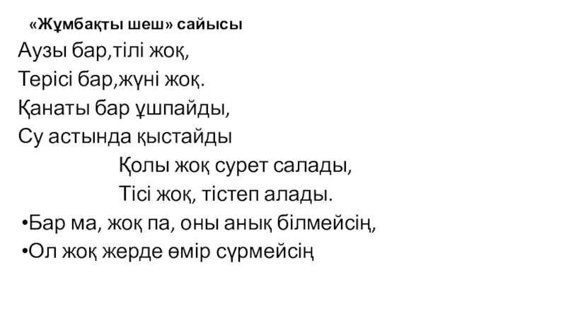 Слайд 3   «Жұмбақты шеш» сайысы
