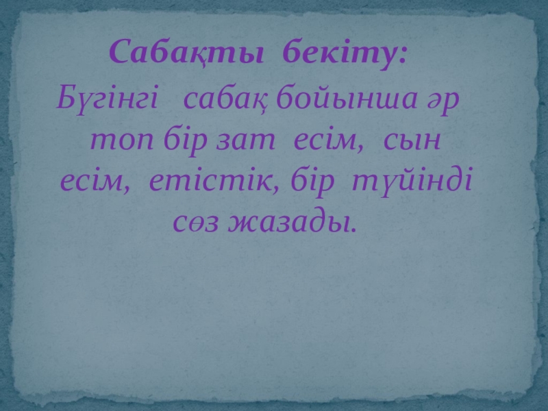 Бүгінгі сабақ бойынша әр топ бір зат есім,