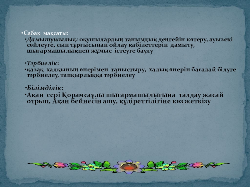 Слайд 1Сабақтың тақырыбы: Ақан сері Қорамсаұлы