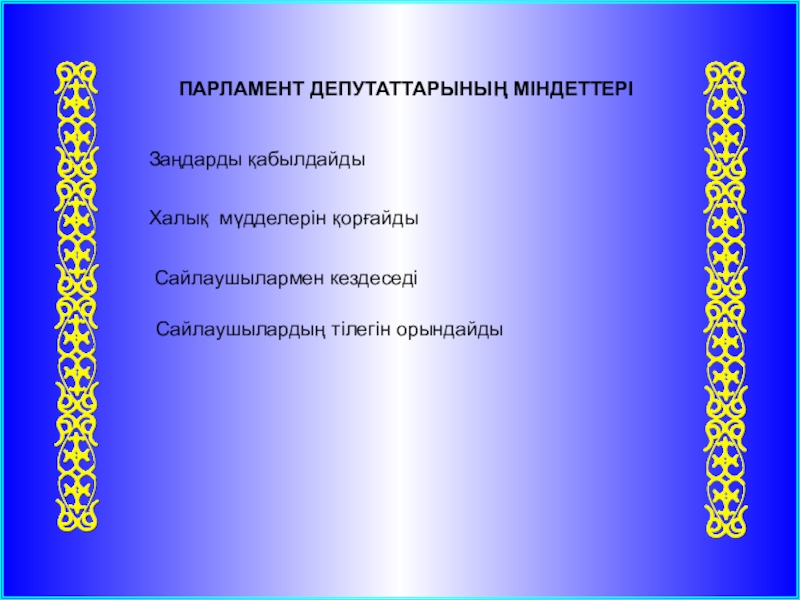 Слайд 5ПАРЛАМЕНТ ДЕПУТАТТАРЫНЫҢ МІНДЕТТЕРІ