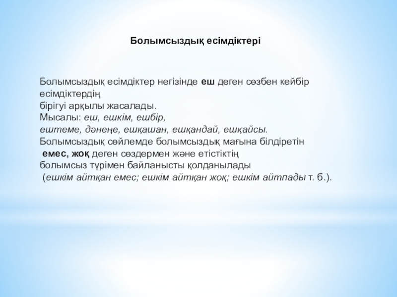 Болымсыздық есімдіктер негізінде еш деген сөзбен кейбір есімдіктердің
