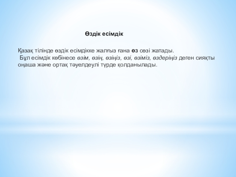 Қазақ тілінде өздік есімдікке жалғыз ғана өз сөзі жатады.