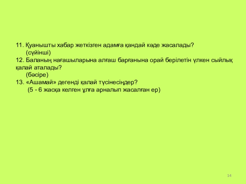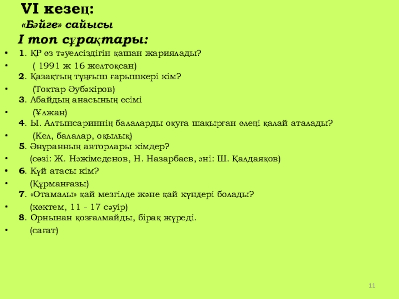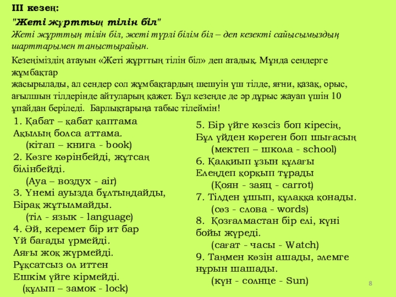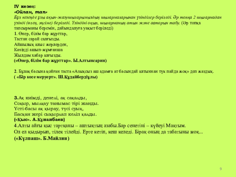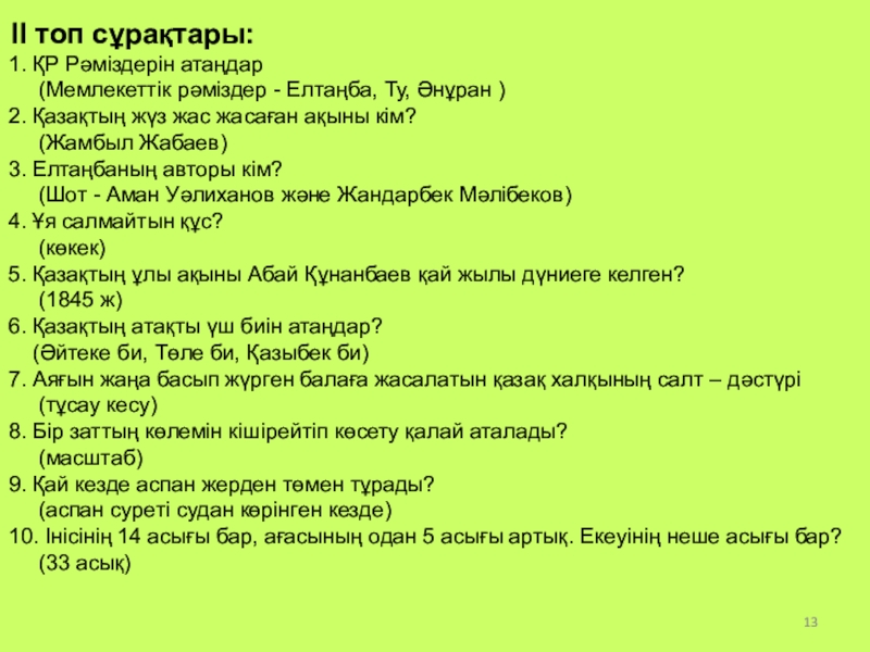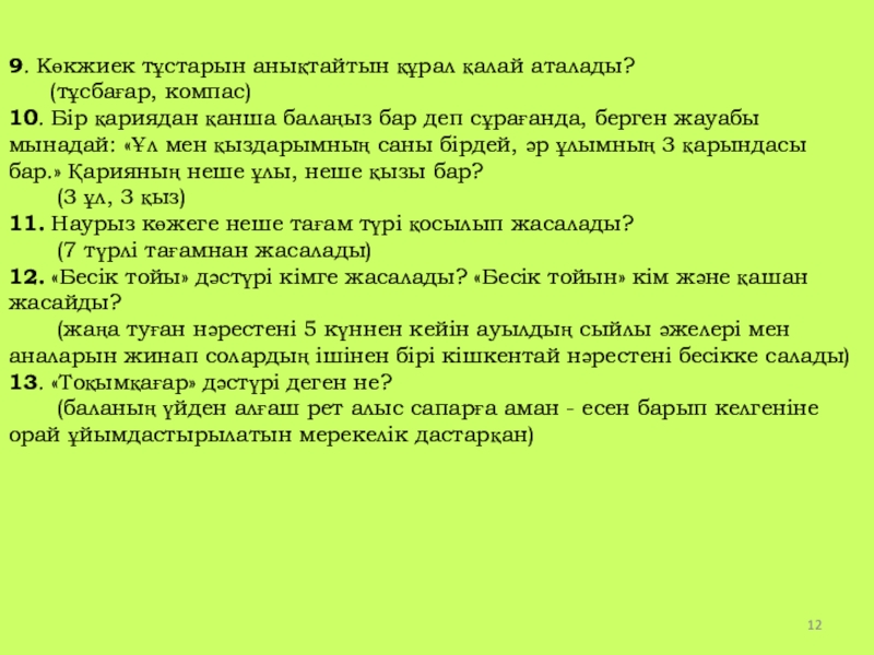 9. Таңмен көзін ашады, әлемге нұрын шашады.