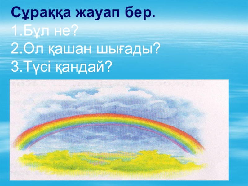 Слайд 6Сұраққа жауап бер. 1.Бұл не? 2.Ол қашан шығады? 3.Түсі қандай?