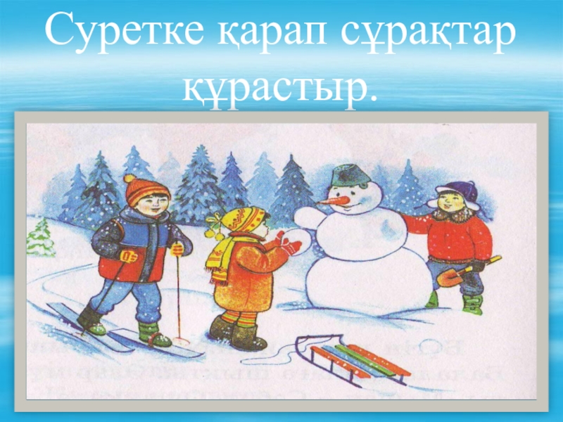 Слайд 5Суретке қарап сұрақтар құрастыр.
