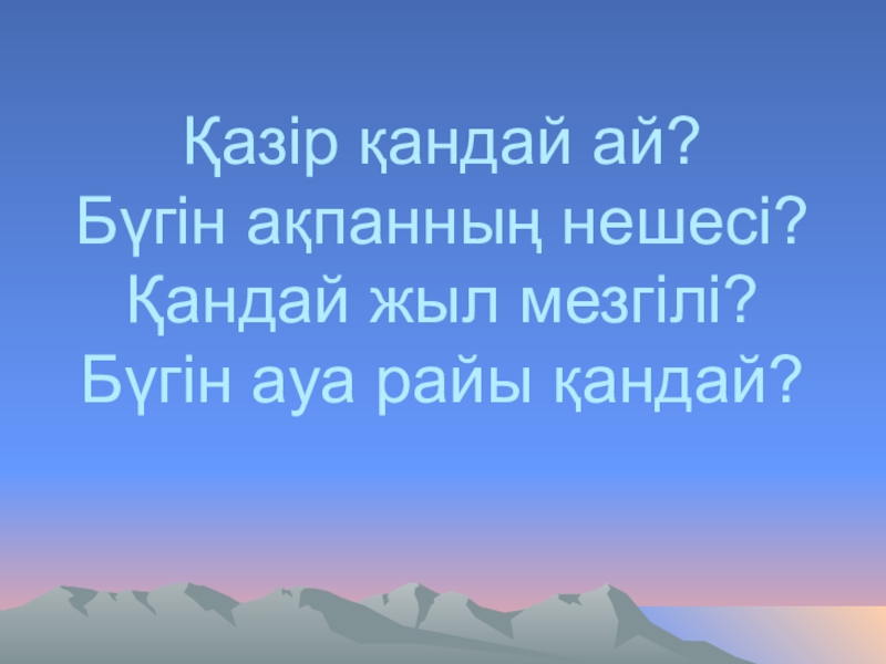 Қазір қандай ай? Бүгін ақпанның нешесі? Қандай жыл мезгілі? Бүгін ауа райы қандай?