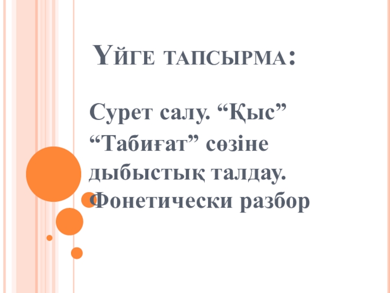 Үйге тапсырма:Сурет салу. “Қыс”“Табиғат” сөзіне дыбыстық талдау. Фонетически разбор