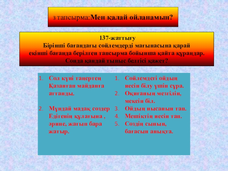 Сөйлем ортасында кездесетін тыныс белгілері бар сөйлем құра.