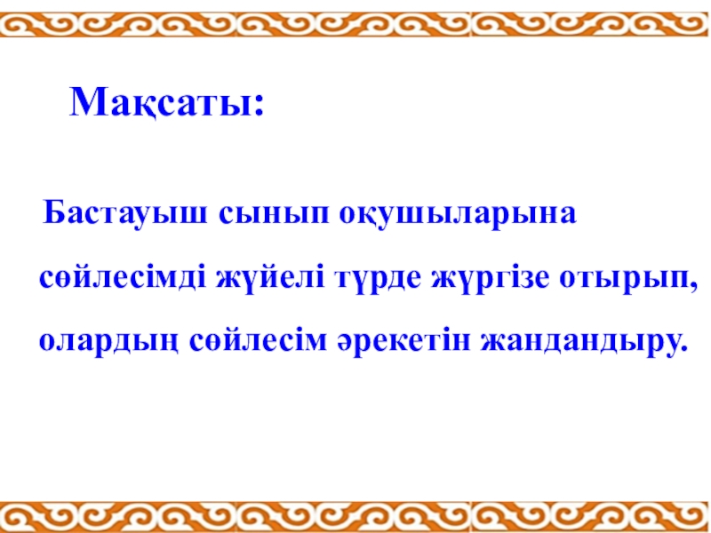 Мақсаты: Бастауыш сынып оқушыларынасөйлесімді жүйелі түрде жүргізе отырып, олардың сөйлесім әрекетін жандандыру.