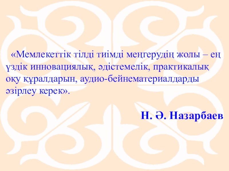 «Мемлекеттік тілді тиімді меңгерудің жолы – ең үздік инновациялық, әдістемелік, практикалық оқу құралдарын, аудио-бейнематериалдарды әзірлеу керек».