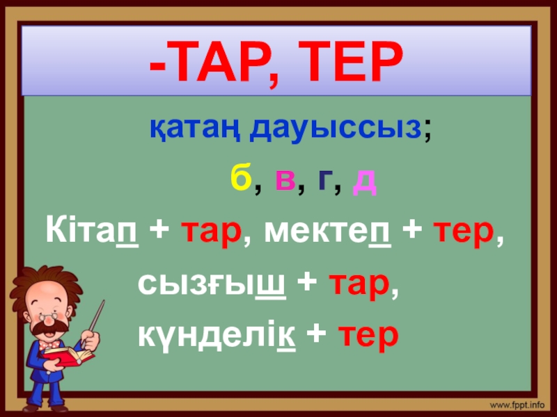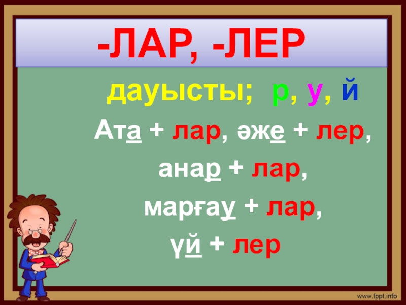 Көптік жалғау – окончания множественного числа-лар, -лер-дар, -дер-тар, -тер
