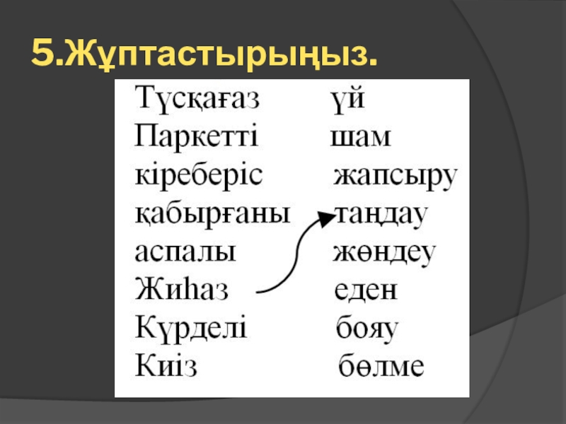 Слайд 175.Жұптастырыңыз.