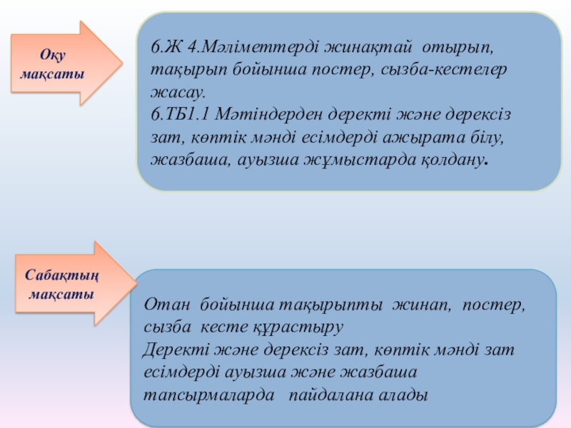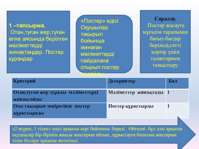 Отан бойынша тақырыпты жинап, постер, сызба кесте құрастыру